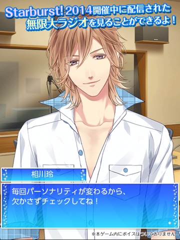 2014年7~9月に行われたアイドルオーディションプロジェクト『Starburst!2014』のラジオプレイや応援アバターがゲットできるメモリアル・アプリです。