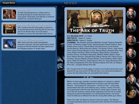 The app is pretty cool and shows you very long and good summarizes of each Stargate Episoode! Super!
