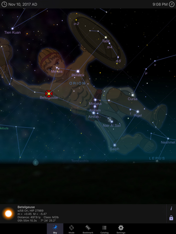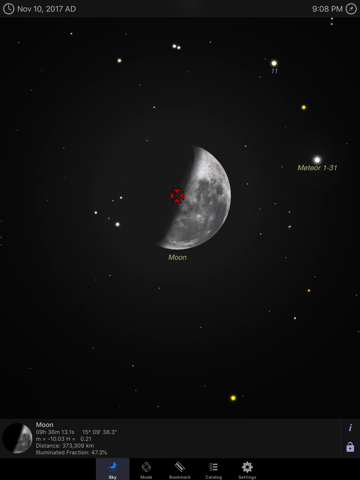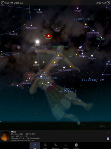 • Planetarium Mode for seeing only objects visible to you, or browse the entire celestial sphere