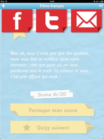 Si vous parvenez à enchaîner les bonnes réponses, partagez vos scores via Facebook, Twitter ou par mail, et comparez-les avec ceux de vos proches : de nombreuses surprises sont à débloquer pour les meilleurs joueurs, et les plus assidus.