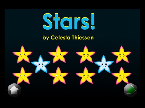 Stars! - Level 1(A) - Learn To Read Books is a very simple book. One sentence (with very slight changes) is used throughout the book. This repeating language pattern allows children to use memory in their first attempts at reading. As well, the more often a child reads a particular word, the more secure the connection between that word’s appearance and its meaning becomes. The close correspondence between text and pictures, found in Level 1, also helps beginning readers experience success. Level 1(A) books are designed for children who are just beginning to learn how to read –like children in Kindergarten or early Grade One or children who are learning English as an additional language.