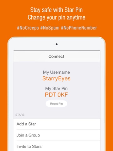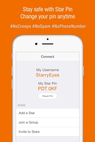 On most messaging platforms, once your phone number or username is publicly discovered, you are no longer in control of who can contact you. Stars is safe by design - instead of searching for people to add, users need their friend’s username as well as their unique private Friend Code. With the ability to reset your Friend Code, you are always in control of who can connect with you. All group chats are also protected with a unique group code.