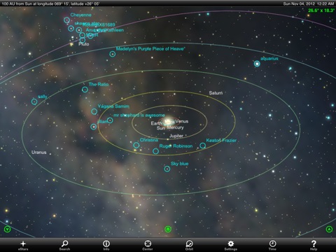 Tap Search to find any object in our galaxy by name, or to choose one from a list of planets, moons, stars, or other objects.