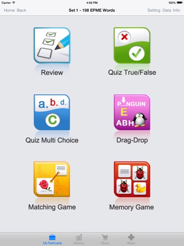 HOW: The app includes studying methods such Quizlet True/False, Quiz Multi choice, Matching game, Memory game, Drag-Drop which help your studying process to become simpler and more exciting.