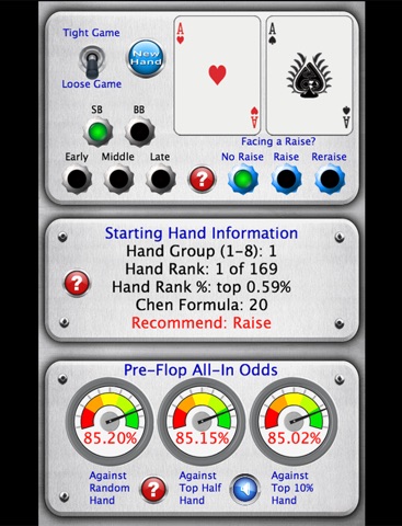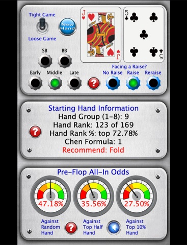 * Tight/Loose Game Toggle - Easily switch between tight (3-5 players to the flop) and loose (6-8 players to the flop) games.