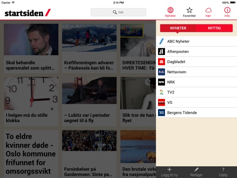 Nyheter & underholdning: Appen har et godt utvalg nyheter og underholdning fra våre egne journalister i ABC Nyheter, og fra norske og internasjonale nettsteder.