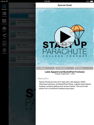 Tune in each Sunday for another episode of season one of Startup Parachute, the only college podcast dedicated to start-ups across campus nationwide.