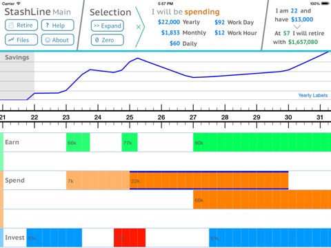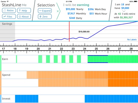 StashLine lets you make better financial decisions by showing you how you how choices can affect your future. Long term planning can help you be more secure about your future and more confident in your choices.