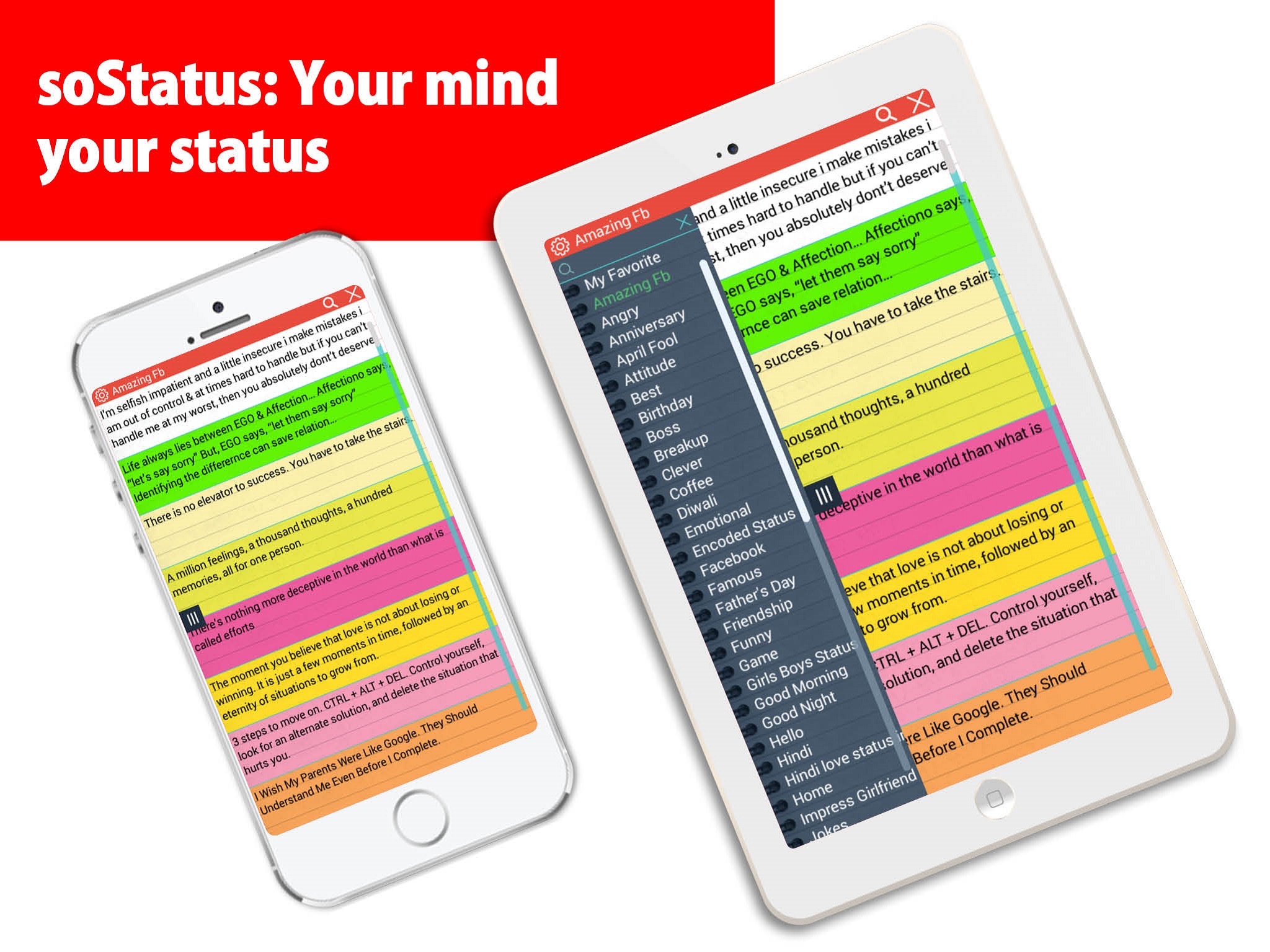 Status and quotes for FB, Whatsapp and Twitter, soStatus - one tap posting on social media at Mac App Store analyse