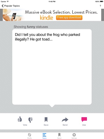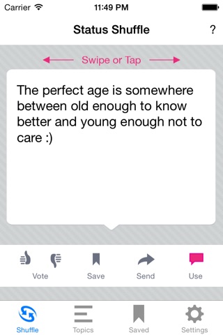 With Status Shuffle, you can choose a status from our huge selection. We have funny statuses, sad statuses, crazy statuses and everything in-between.