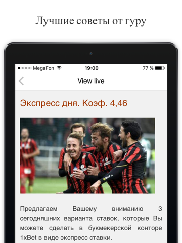 Приложение создано для новичков и профессионалов. Мы обещаем что вы будете всегда вкурсе последних событий в мире спорта. Полезные советы и стратегии от наших специалистов помогут вам!