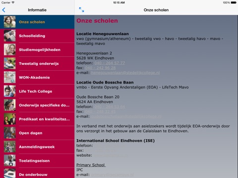 Door middel van deze app biedt het Stedelijk College Eindhoven een activiteitenkalender en algemene informatie aan basisscholen in Eindhoven en omgeving. De kalender kan worden ingesteld om tijdig een signaal af te geven voor een naderende activiteit. De informatie omvat, onder meer, het onderwijsaanbod en contactgegevens. De informatie is voor een groot deel ook beschikbaar zonder dataverbinding. Zodra een verbinding beschikbaar is wordt alle informatie online ververst.
