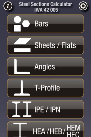 Steel Sections Calculator IWA 42005 for iPhone, iPod Touch and iPad shows the main dimensions, meter weights cross sections of series IPE, IPN, HEA, HEB, HEM, HEC, UAP and UPN steel beams. Angle iron, plate and steel bar as well as scales to calculate steel flats.