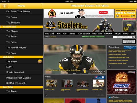 Pittsburgh Steelers Fan-Static keeps you up to date and allows you to get involved and show off your true fan spirit! Follow Twitter Feeds from the Current Players, Management, Local Beat Writers, Former Players and FANS like you! Youll never miss a news items, fact or tweet with Fan Static.