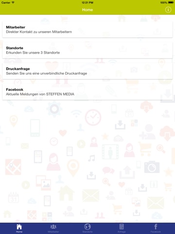 Freuen Sie sich über aktuelle Informationen aus dem STEFFEN Medienhaus! Mit dieser App erfahren Sie immer als Erster, wenn es etwas Neues von STEFFEN gibt. Ihre Druckanfragen senden Sie uns mit dieser App schnell und unkompliziert. Sie haben Fragen? Kontaktieren Sie einfach die Profis von STEFFEN. Mit der STEFFEN MEDIA-App finden Sie immer den richtigen Ansprechpartner.