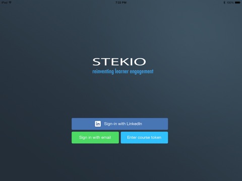 Registered learners receive a token from their program manager that allows them to download the STEKIO app to their iPad and self-administer their onboarding. Additionally, for those who choose to login through LinkedIn, their profile will be automatically be added to the their learner network and stay synched with LinkedIn.