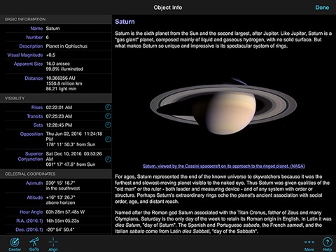 -Learn about the object you’re looking at with built in object data and color astro photographs.