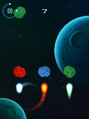 Take control of the three colored fireballs. Rotate and destroy all the asteroids by matching the colors.