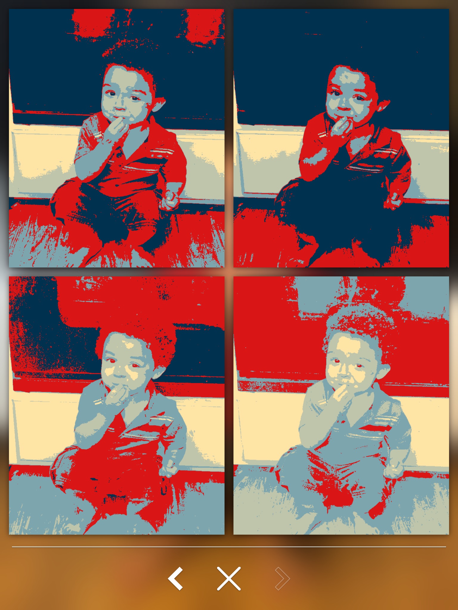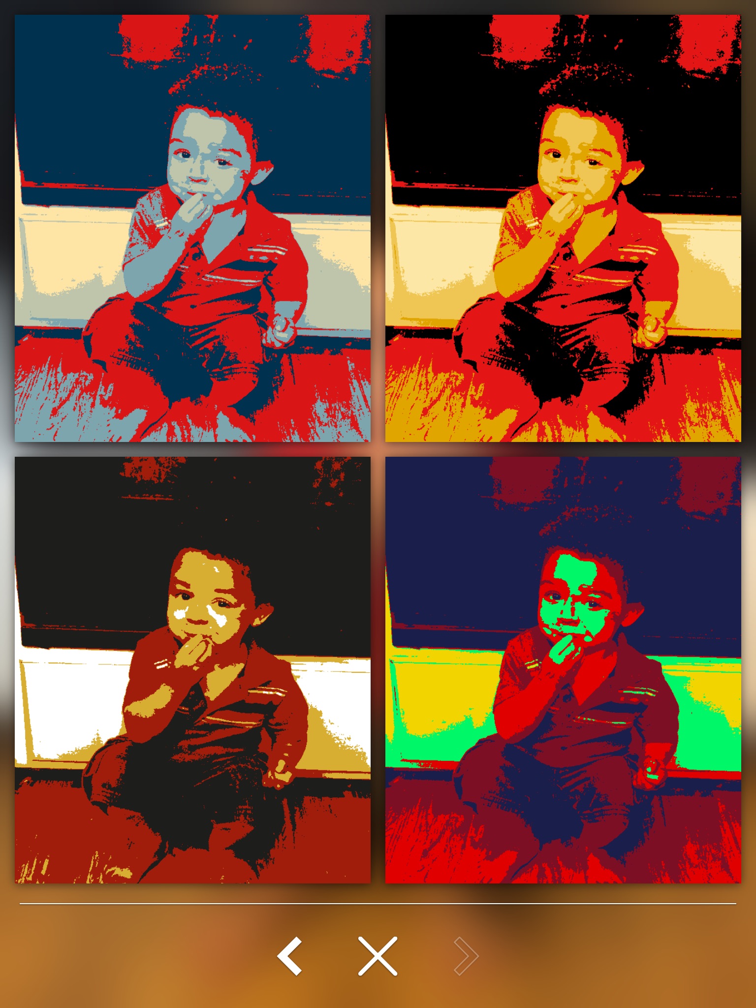 StencilPic allows photo-editing with the simplest interface available: just choose between four images three times and you are done! No ads or in-app purchases.