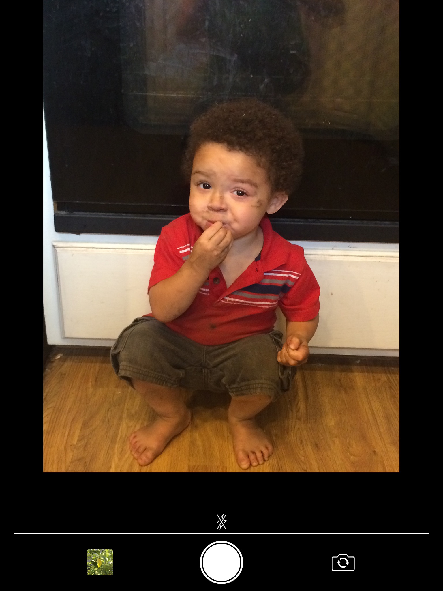 Use a photo from your library or use the camera directly. Auto-timer optional.
