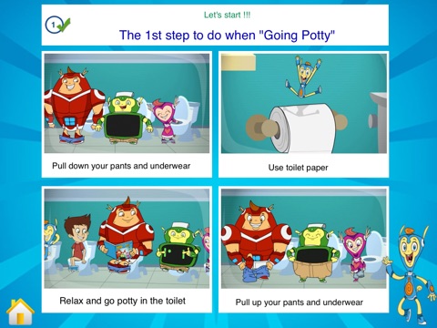 After watching the video your child can play a game to reinforce what they learned. Put the images in order showing the steps of what needs to be done when going potty. This applications does not require reading skills and young children will be able to follow and answer the questions independently.