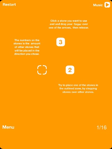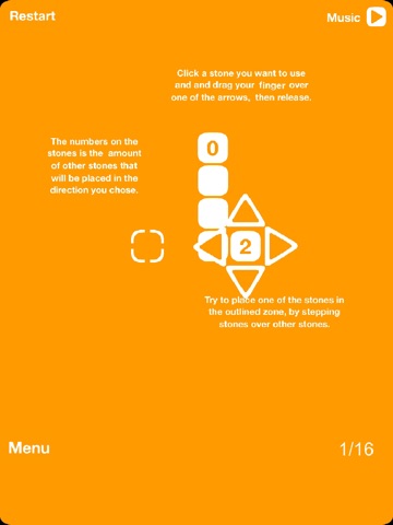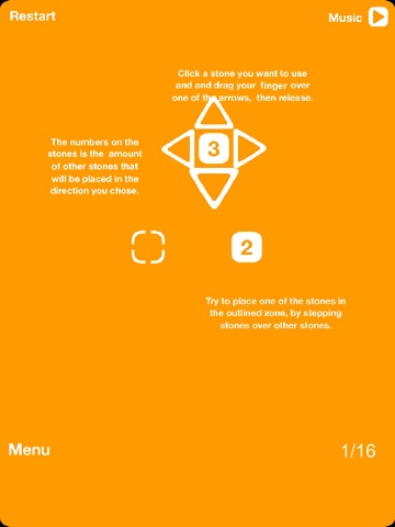Complete the puzzles in Stepping Stones by stepping the stones over each other to reach the dashed goal. From each numbered square, the player can lay that many stones in one of four directions. When there are stones already in the path, the next stone "steps over" that stone as it lays out its own.