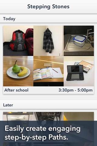 Stepping Stones is a simple and user-friendly app which allows you to quickly create visual guides or ‘Paths’, using your own photos.