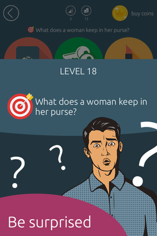 Score a stunning victory! Start playing right now! OK, enough with the stereotypes already. The goal of this game is to match suitable pictures to words. For example: what does a woman keep in her purse?