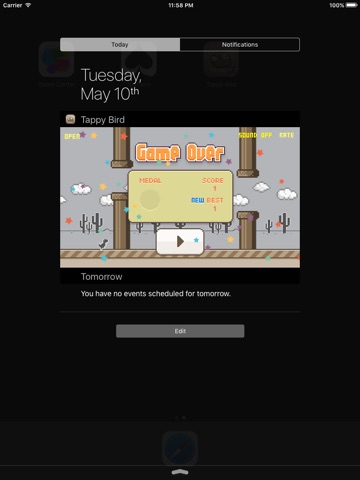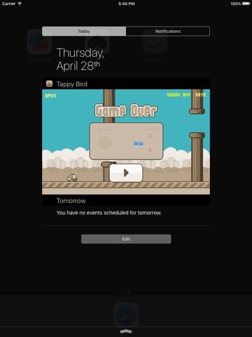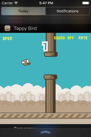 Play with Tappy Bird anytime, anywhere, by just dragging down from the top on your screen to reveal the notification center and your new dino-friend will be there waiting for you!
