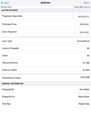This app allows you to prepare estimates of net proceeds and buyer closing requirements. Simply select the state and local market(s), load the appropriate title and closing cost information and you’re ready to create your first Net Sheet.