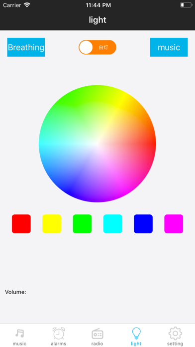 This application is designed to control the sound and light alarm clock. You can set the lighting color and alarm clock time. You can play songs in sync. Sleep time can be set.