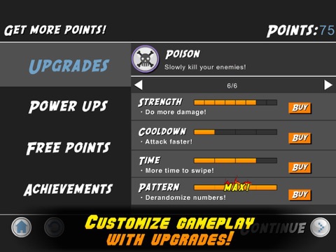 First customize your character with different attacks and weapons. Then select an enemy and an item to attack him with. Once you do that, its SLICE SLICE SLICING time! Quickly swipe your finger across the numbers in order to do massive damage! Watch out though, these enemies will fight back hard!