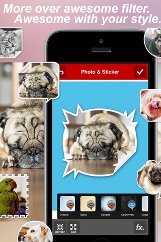 "Sticker Em Up" let you create more over 150 sticker items style.