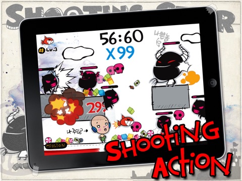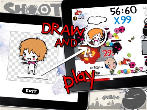 Sticker Shooting Star – A Casual action shooting game full of excitement! Sticker images are used in the entire game play and you can draw your own sticker characters, weapons and monsters. Create your own game by changing the game stickers with your created stickers!