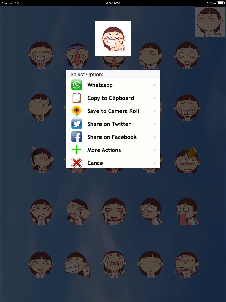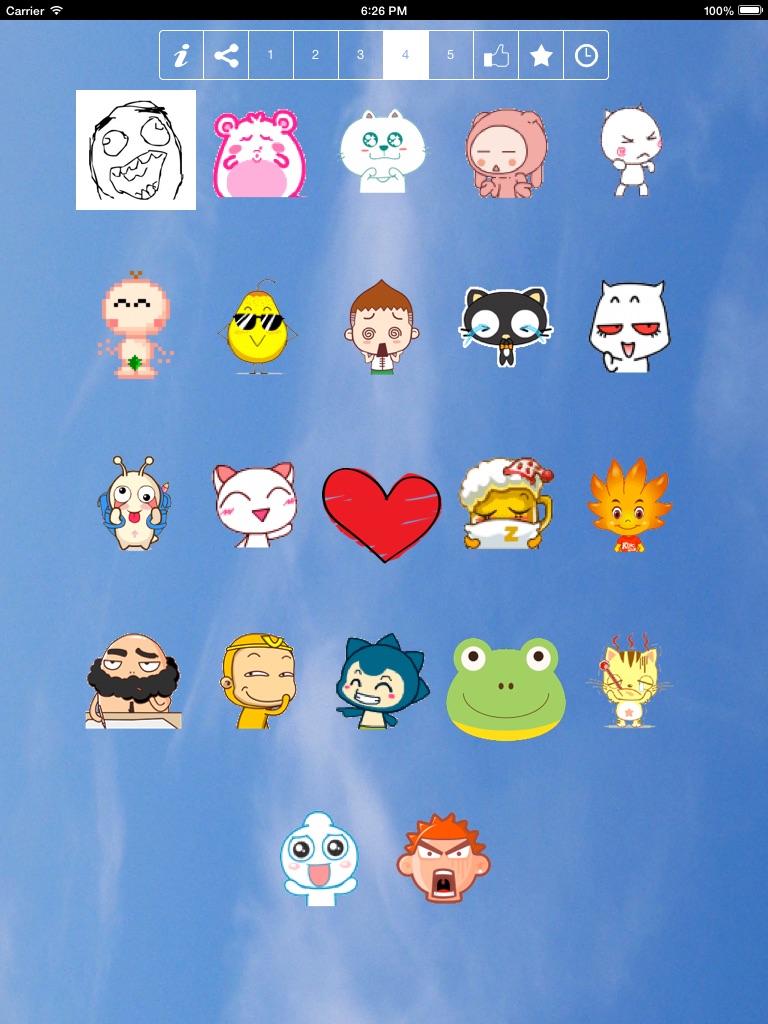 Choose a set of images, select the one that fits what you want to send or express, and choose the option for share on instant messaging, chat rooms, email, SMS, Facebook, Twitter ... etc.