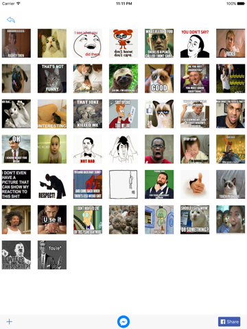 * Share funny and cute animated GIF stickers to Facebook Messengers friends.