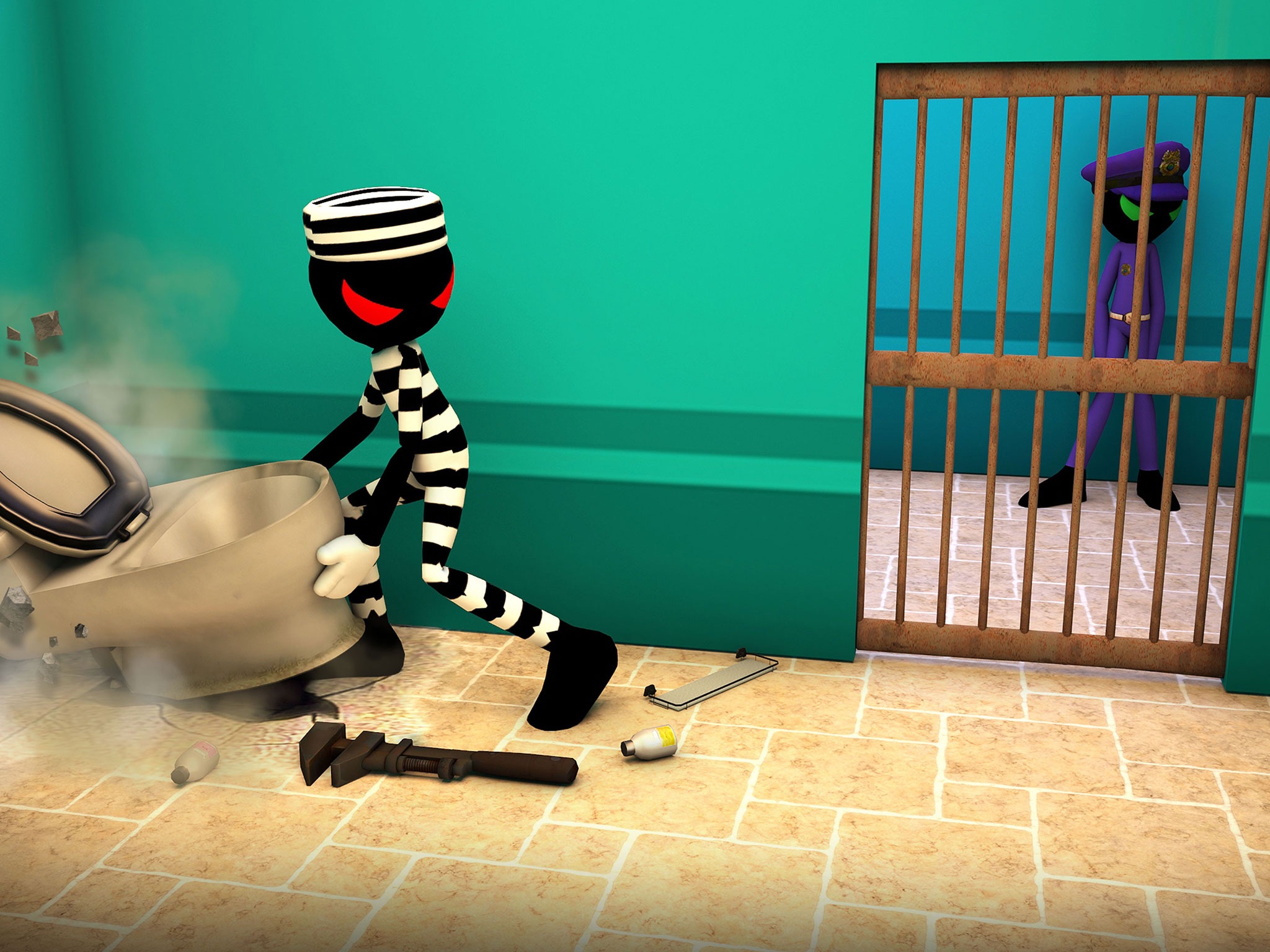 Create distraction for the guards.Steal the key and use it to unlock the doors.Break the walls and make your own crazy escape strategy that can help stickman escape the prison in shortest possible time.