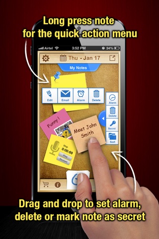 Organize your to do list, task list, and reminders with StickMe Notes - the most awesome sticky note & task manager app with built in alarm for iPhone. Use StickMe Notes to upgrade the boring old paper note with HANDWRITTEN or TEXT or notes on your iPhone. If you are too tired to draw or type, you can simply ATTACH A PHOTO or RECORD YOUR AUDIO NOTES.