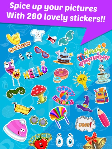 Click photos, draw/paint on them, decorate with 280 stickers, send stickers to WhatsApp friends & share it on Facebook, Twitter.