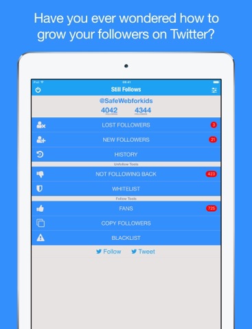 Let the app find out who is not following back, your fans, your new followers, your lost followers...