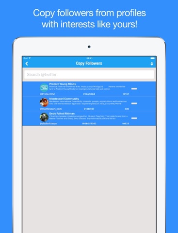 - The exclusive Copy Followers tool will help you discover potential followers.