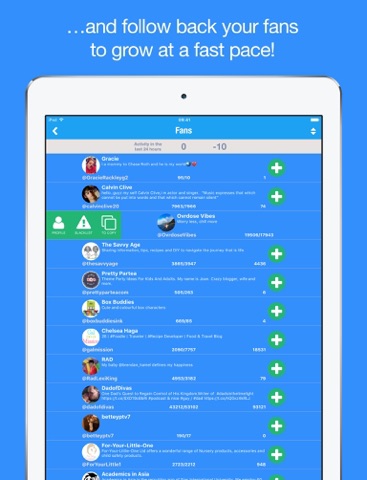 And then smart management! Follow back the good fans and unfollow who is not following back... with just one click! Give up wasting your time...