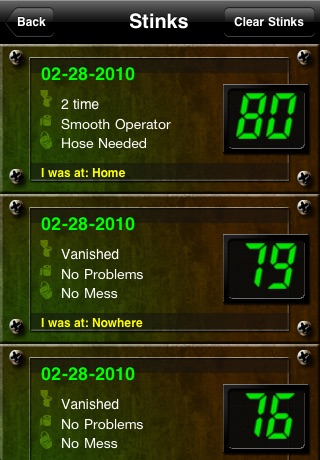 As you use the Stink-O-Meter you can keep track of your smelly history