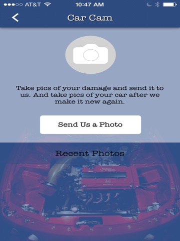 INTEGRATED CAMERA. Take pics of your damage and send it to us right after it happens. Take pics of your vehicle after we service it and send them to us to post.