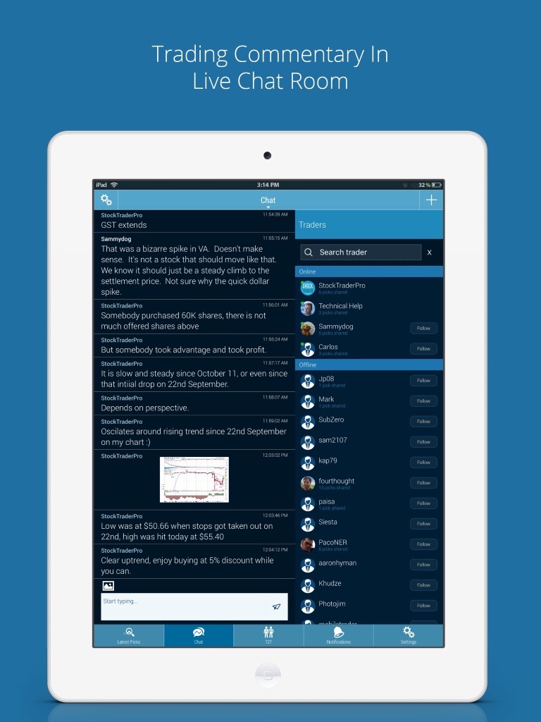Iam a new newbie to stocks and this app is really helpful .The support team is online from 7am to 4pm everyday and they provide all real time updates on the market in the chat room. love this app!!!