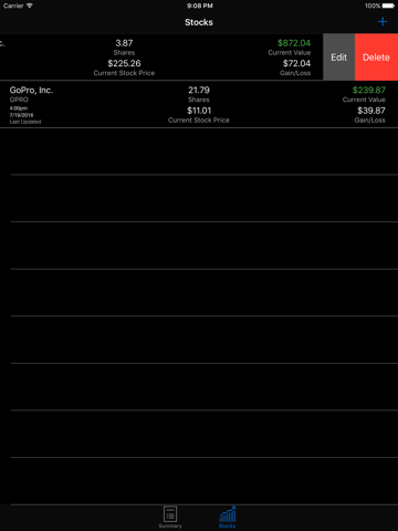 Track the stocks you own. Conveniently see the overall value and gain/loss of all your stocks. Quickly add stocks by entering the amount invested and the stock price when invested.