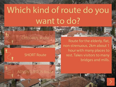 - ODABERITE jednu od tri rute (dječija, kratka ili avanturistička) i pregledajte na tri načina (kamera, mapa ili lista)