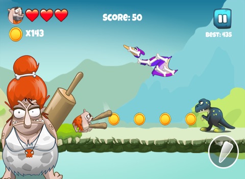 Simple game play. Just jump and throw your weapon to hunt Dinosaurs and bring home the bacon for your wife because she is hungry and starving for some food.