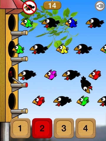 Stop Crows is a reflex game. The objective is to stop as many crows as possible from entering the birdhouse by tapping 1, 2, 3 or 4.