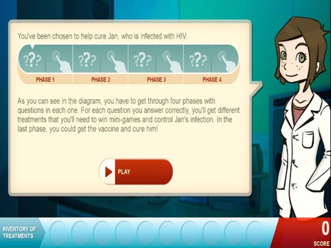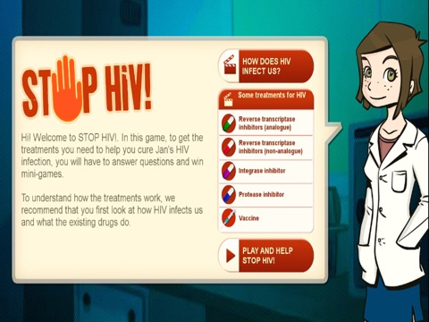 How does HIV infect us and how to current drugs on the market help control the infection? In this game youll have to treat a patient infected with HIV. Youll need to pass all 4 rounds with questions and mini-games in order to control the infection.